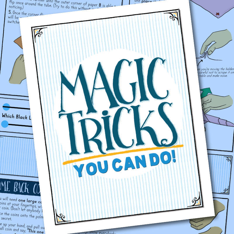 On this page you will find the five magic tricks in your booklet. Each one is simple to learn, using regular objects found around the house, and you can be
